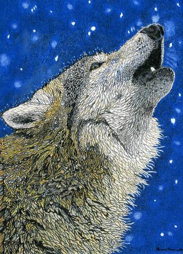 When anyone thinks of myths and legends that feature a wolf, it is the grey wolf or timber wolf (Canis lupus), that instantly springs to mind. It is native to Eurasia and North America with a population estimated to be around 300,000. A gregarious apex predator which is only threatened by humans and tigers, grey wolves hunt in packs so that they can bring down large prey such as a moose, weighing up to 500 Kg. This wolf howls during a night time blizzard.