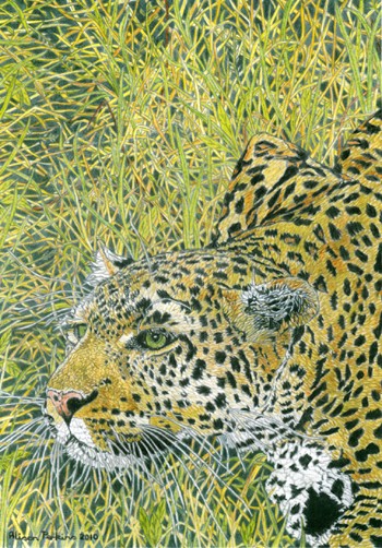 This leopard (Panthera pardus) blends into the undergrowth with ease.